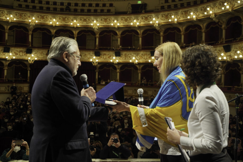 Un appello, quello della regista, che è poi risuonato anche all’inizio della serata al Petruzzelli, dove Daria Onyshchenko ha ricevuto dalle mani del direttore Laudadio il Premio Federico Fellini conferito dal Bif&st ai cineasti dell’Ucraina (“Se fosse ancora tra noi, Fellini glielo avrebbe consegnato personalmente“, ha commentato Laudadio).