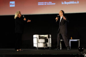Il Premio Federico Fellini Platinum Award for Cinematic Excellence è stato consegnato a Roberto Benigni dalla Presidente del Bif&st, Margarethe Von Trotta. “Con lei parliamo sempre in tedesco” ha scherzato ancora Benigni “la lingua più bella per la poesia e la tortura”.
