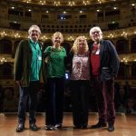 La regista Valeria Parisi, la co-sceneggiatrice e figlia di Paolo Villaggio, Elisabetta, Ricky Tognazzi e Neri Parenti sul palco del Teatro Petruzzelli stamattina al termine della proiezione del documentario “Mostruosamente Villaggio”, presentato al Bif&st in anteprima